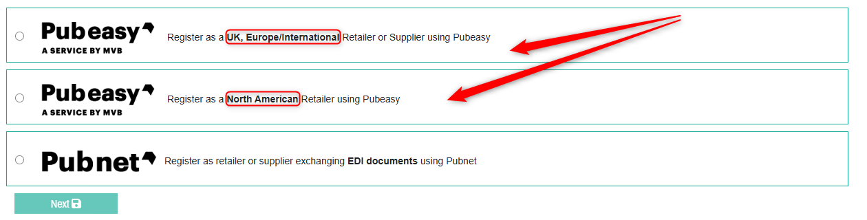 If you are already registered for another service (such as Pubnet US or Teleordering UK) under the email you entered in Step 2, you will be shown this screen and will need to click the Create new registration button to get to the product selection screen.