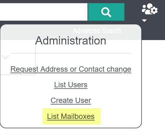 1.) List Mailboxes (from the Settings area in the upper right of the screen)