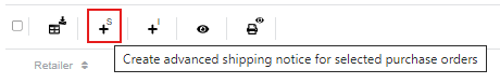 Option 1: To create a shipping notice for multiple order lines, select the relevant order lines and click on the "+S" above the order lines (Please note: the order lines must be from the same retailer SAN).